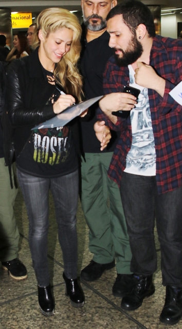 sempre mega simpática, atendeu os muitos fãs no aeroporto, deu autógrafos e posou